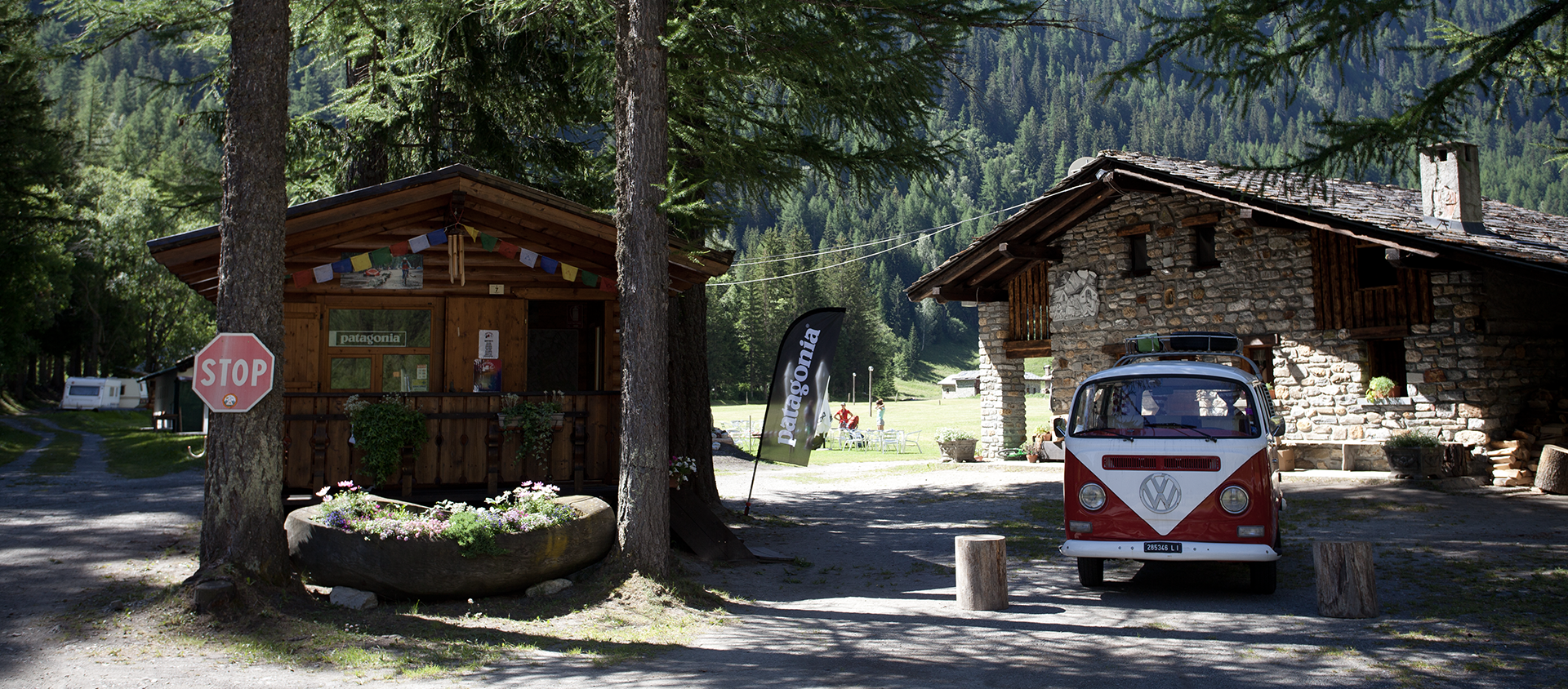 Accoccolato in un grande prato verdeggiante a 1560 mt, l’Hobo Camping è un piccolo campeggio di montagna dallo spirito libero. Circondato dalle granitiche cime del Monte Bianco, all’Hobo avete spazio senza fine. La vostra piazzola è un soffice prato verde non perimetrato, per darvi la possibilità di immergervi nella natura selvaggia di questa sorprendente valle. Tutti i vostri vostri amici a quattro zampe, alati, a due zampe, a due gambe, anfibi, preferibilmente vivi, sono i benvenuti e potranno finalmente seguire la loro natura e scorrazzare lungo il fiume. Sarete finalmente disturbati solo dal cinguettio degli uccellini, dallo scorrere lento del ruscello, e dal fresco venticello di montagna che si insinua tra gli alberi… Ma se avete desiderio di mondanità Courmayeur è dietro l’angolo e Chamonix, con la sua atmosfera internazionale e alpinistica, a pochi km. Siamo un gruppo di amici, che amano la semplicità e l’accoglienza informale, pronti a dare il massimo per farvi vivere la vacanza come ve la siete immaginata. Sarete liberi di non fare niente e godervi un aperitivo sulle nostre amache, oppure partecipare alle tante attività sportive che offre la valle e che noi possiamo organizzare per voi. Basta chiedere! SARA’ UNA VACANZA INDIMENTICABILE!